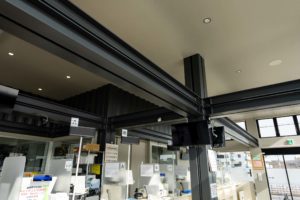国内最大級!36台のコンテナが創り出す、病院敷地内の開放的な薬局&カフェ施設