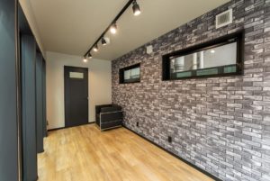 ブラックの外観が映える二階建てタクシー待合所